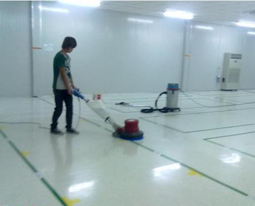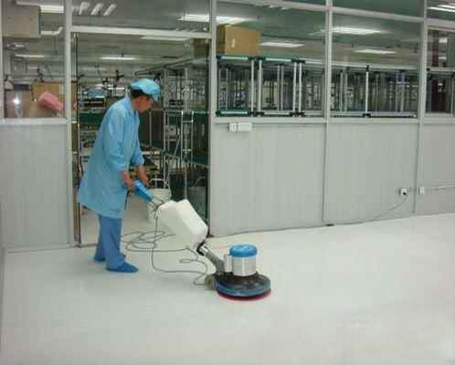 3、地面:地面材料多采用聚氨脂涂料、环氧树脂、人造革、水磨石,为了有效预防地面材料发尘和提高地面材料的使用寿命,可采用防静电积聚的蜡水打蜡。蜡面用超滤尘工业吸尘机吸尘或洗地吸干机洗地。